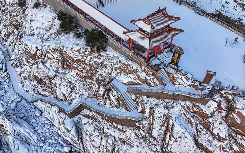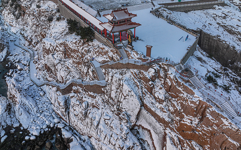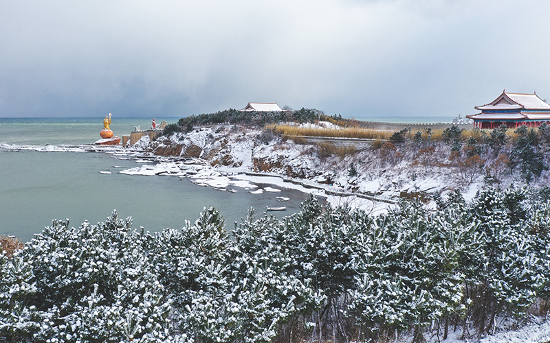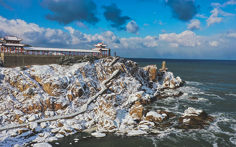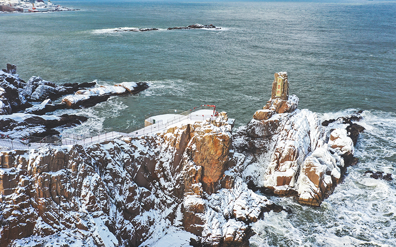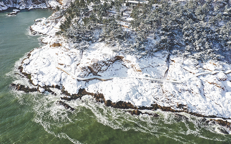 山东威海成山头:白雪勾勒出海岸线的壮丽磅礴,天地沧海间一幅立体冰雪画卷自然而成,犹如走进白色梦幻的童话世界。